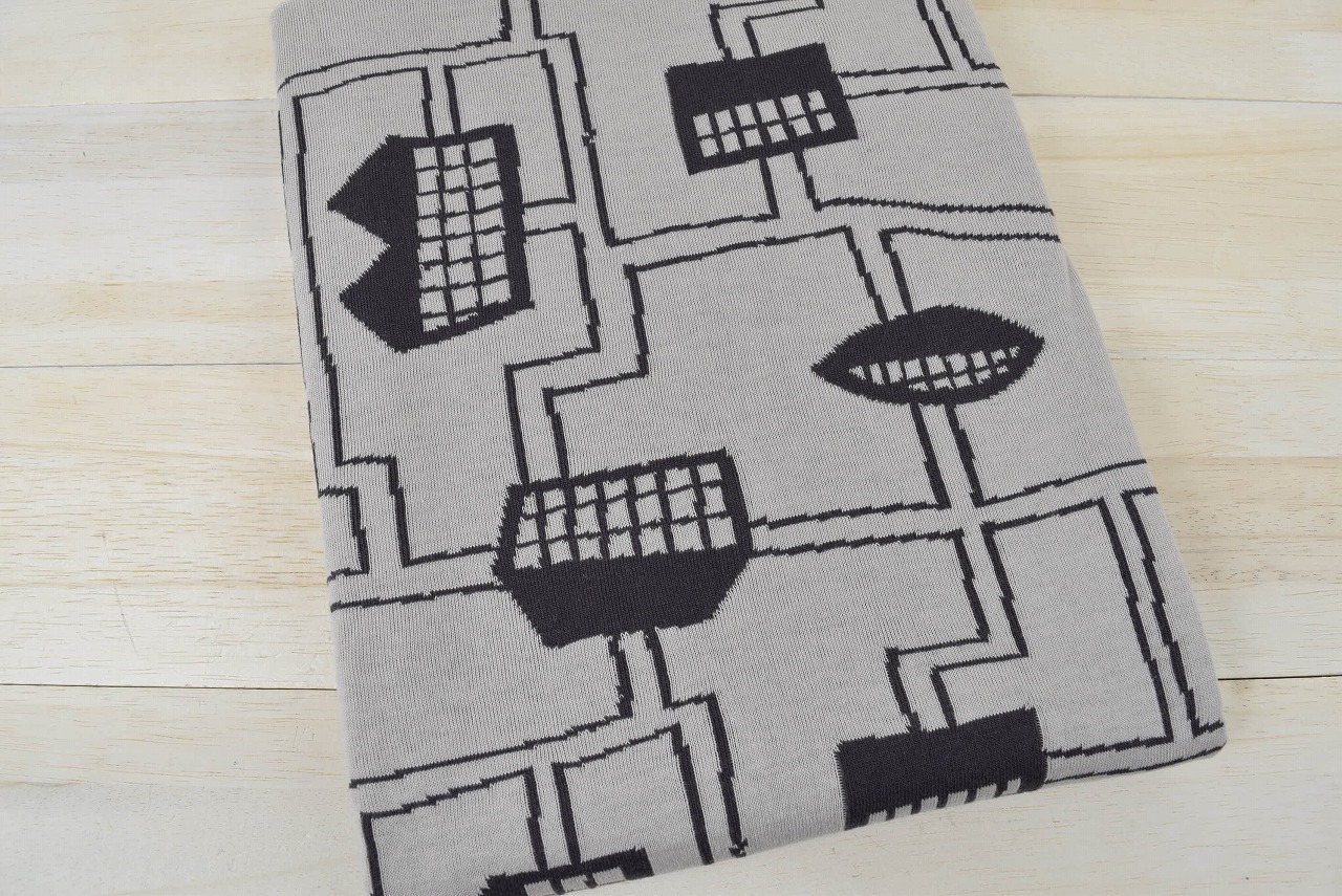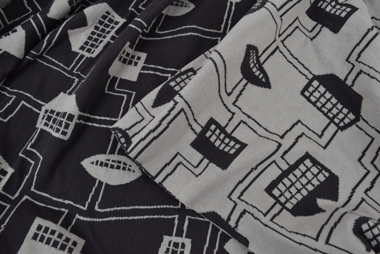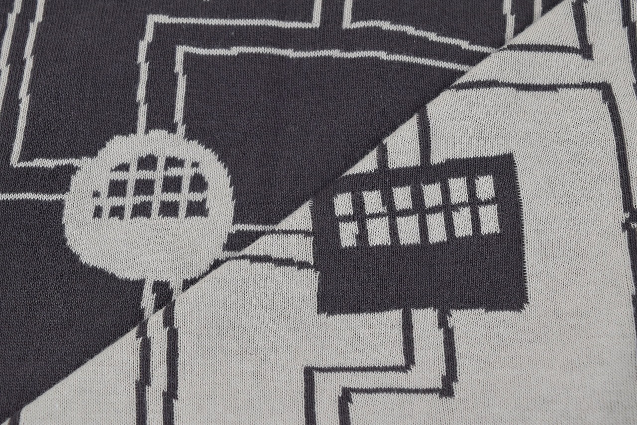 リバーシブルジャガードニット生地 〈KIM HONO×maffon〉家柄         色:エボニー/カシミヤ