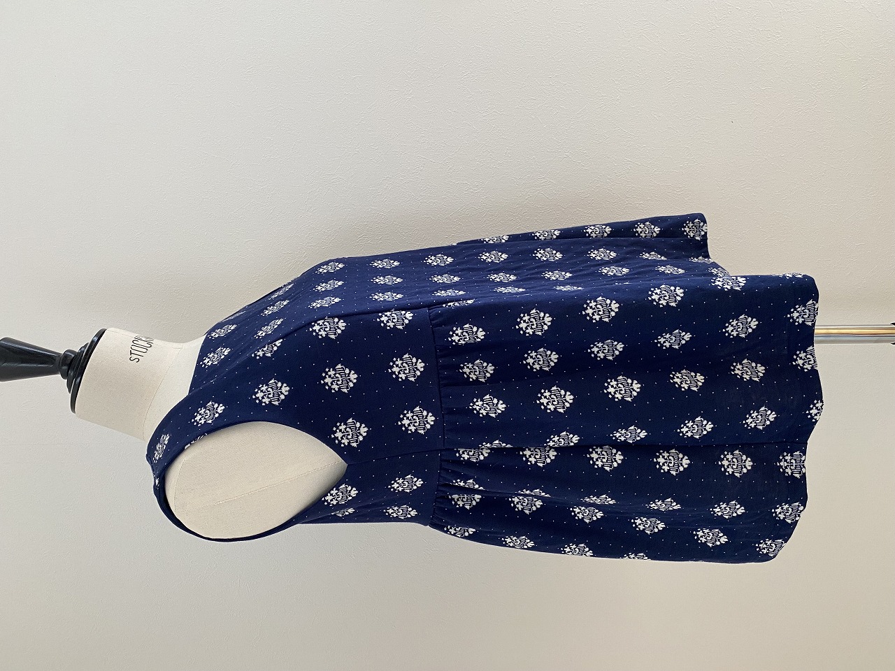 スクエアネックと切替ギャザーがポイントの重ね着ができるタイプのノースリーブプルオーバーです。