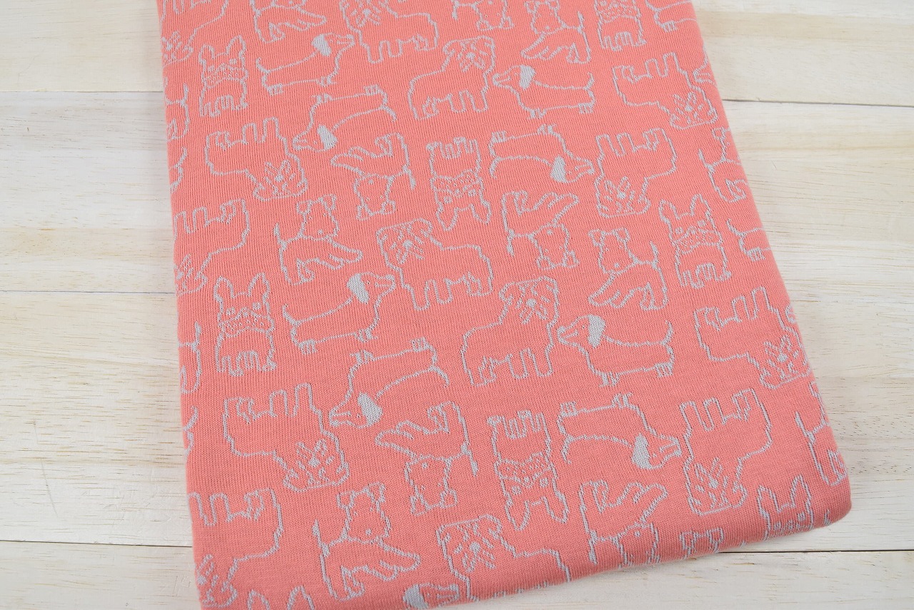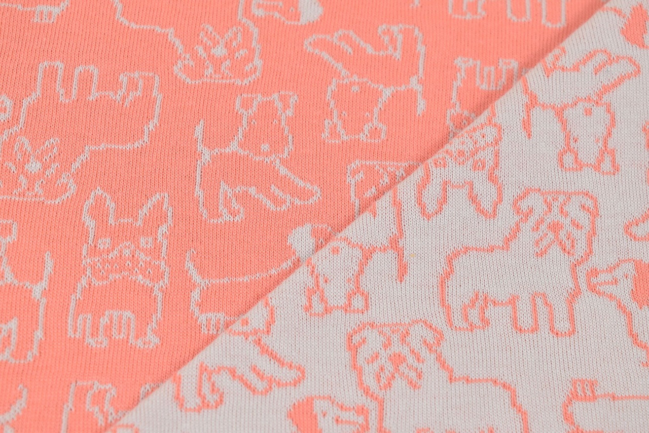 リバーシブルジャガードニット生地 チャムチャム柄                 色:フラミンゴ/ライトグレー