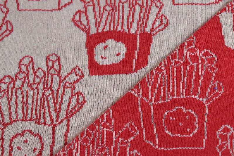 リバーシブルジャガードニット生地 ポテト柄             色:赤/コムギ