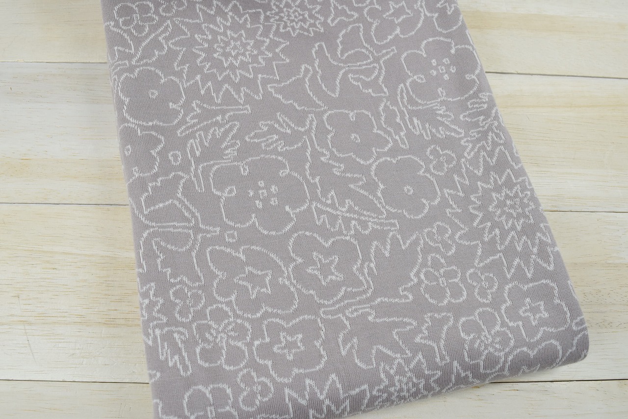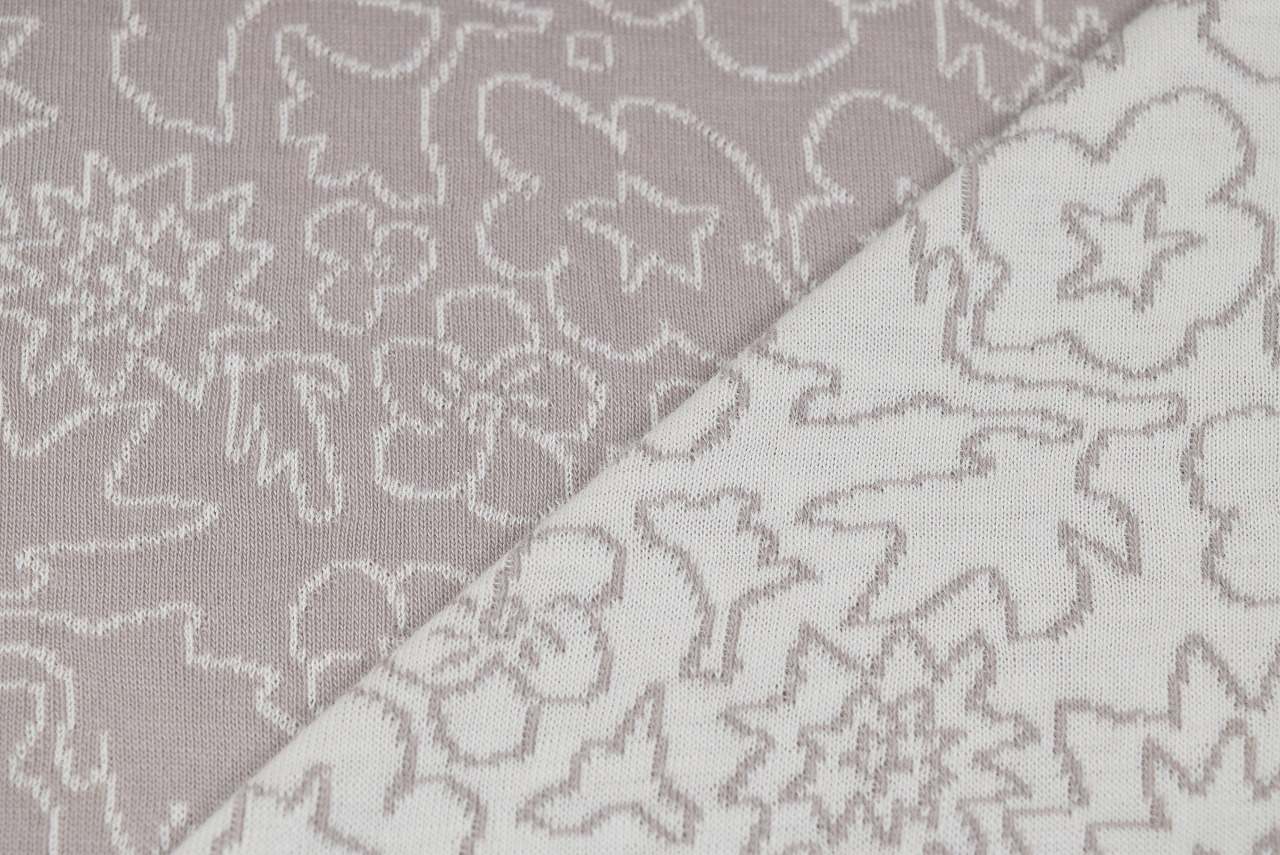 リバーシブルジャガードニット生地 ブルームパレード柄           色:トープ/アイボリー