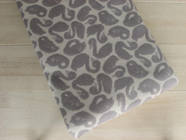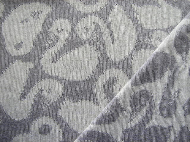 リバーシブルジャガードニット生地 スワン柄(1mカット生地)               色:アッシュ/アイボリー