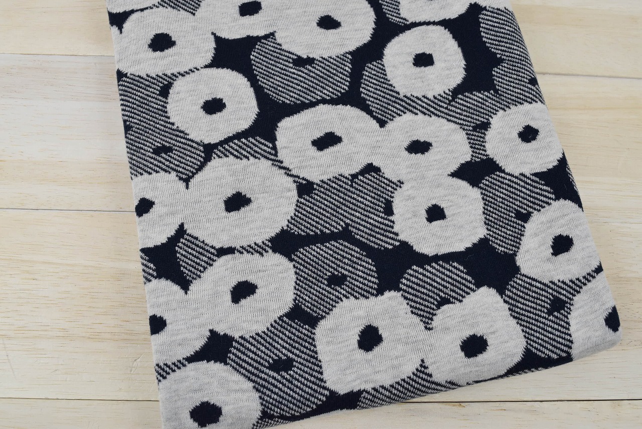 リバーシブルジャガードニット生地 デイジー柄 麻混        色:ネイビー/杢カシミヤ