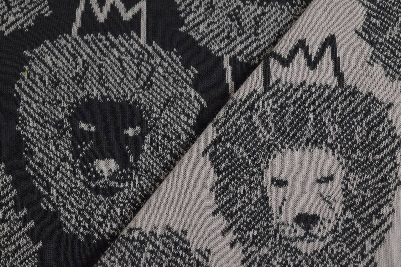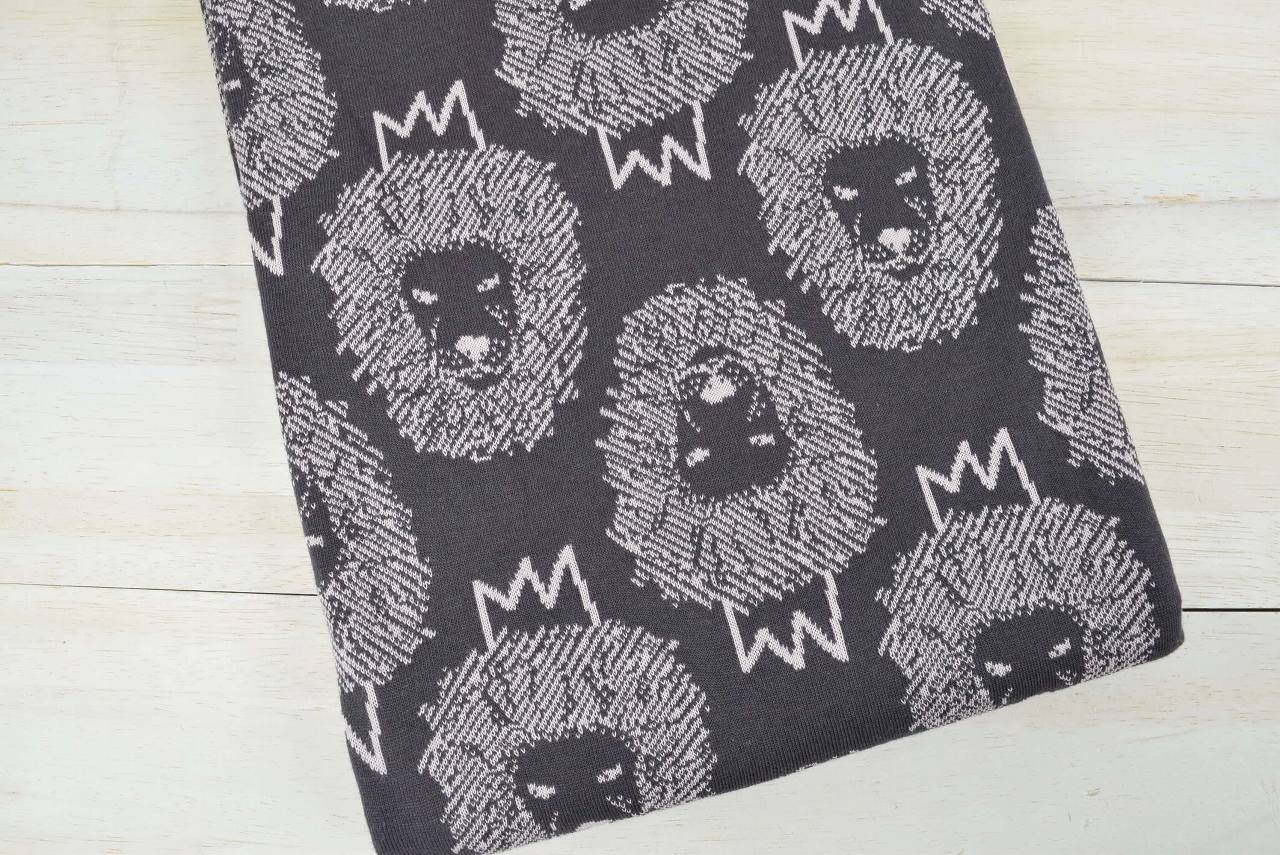 リバーシブルジャガードニット生地 ライオン柄                 色:エボニー/フレンチピンク