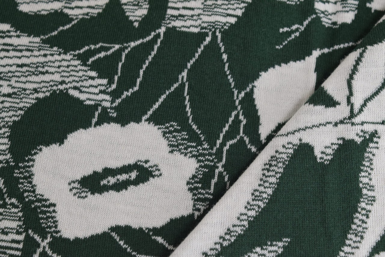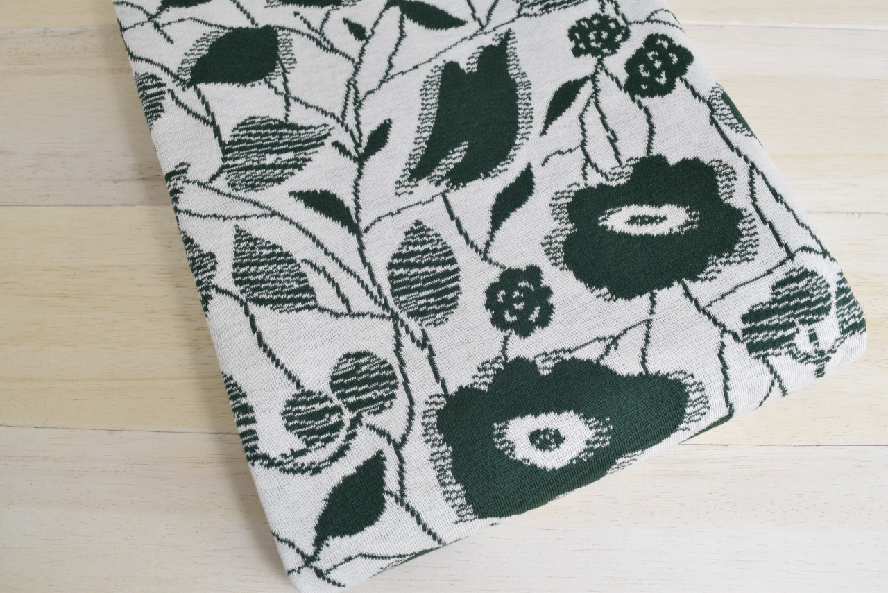 リバーシブルジャガードニット生地 ラフォーレ柄               色:フォレストグリーン/アイボリー