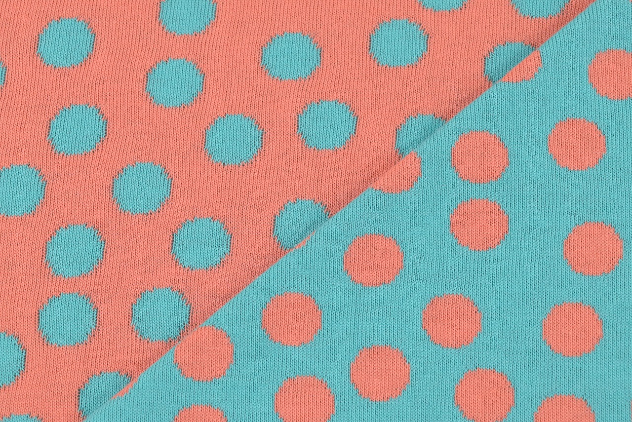 リバーシブルジャガードニット生地 ドロップキャンディ柄              色:エメラルド/フラミンゴ