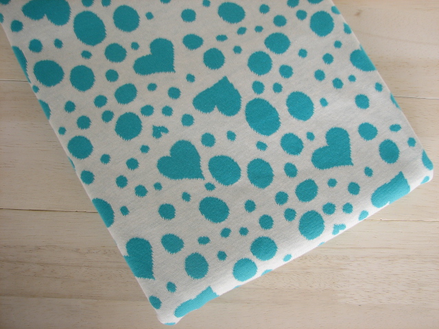 リバーシブルジャガードニット生地 マシュマロハート柄          色:エメラルド/アイボリー