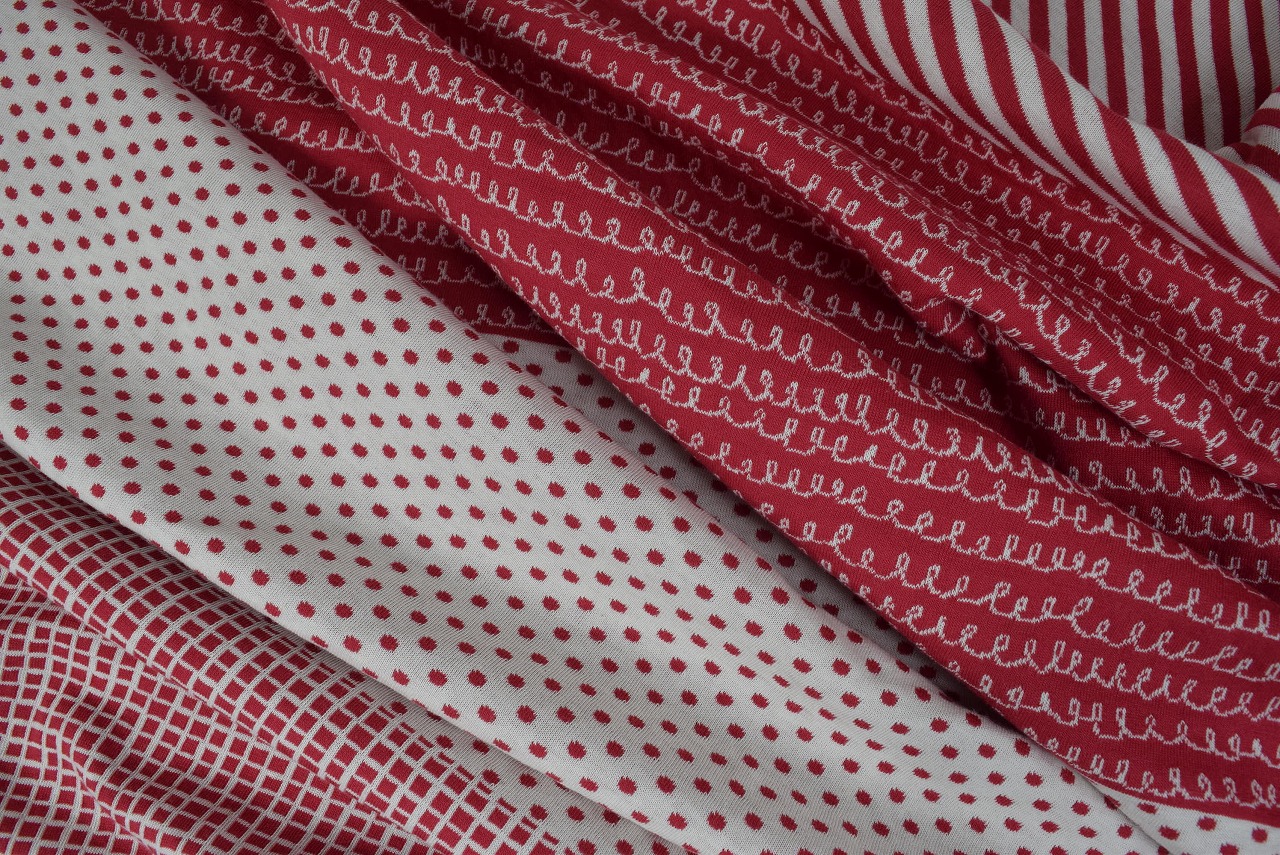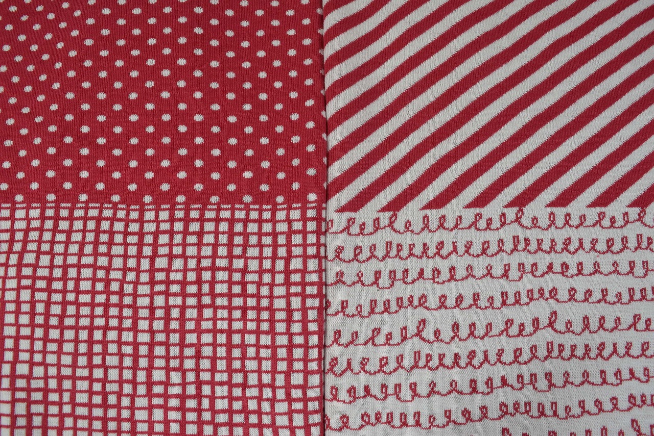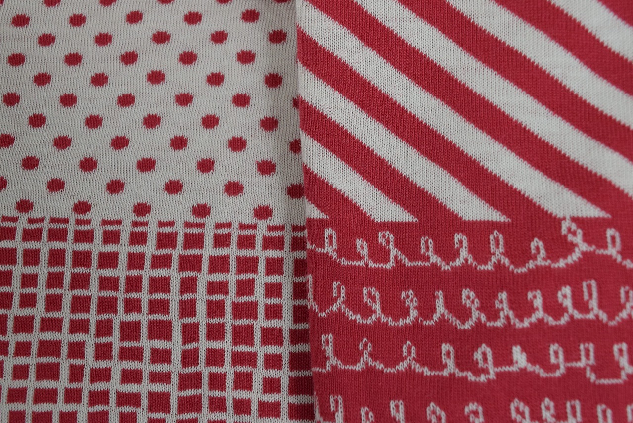 リバーシブルジャガードニット生地 パネル柄 150cm幅 1パネル4柄               色:ルージュ/アイボリー