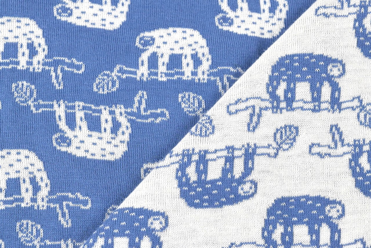 リバーシブルジャガードニット生地 スロースロー柄         色:デニム/アイボリー