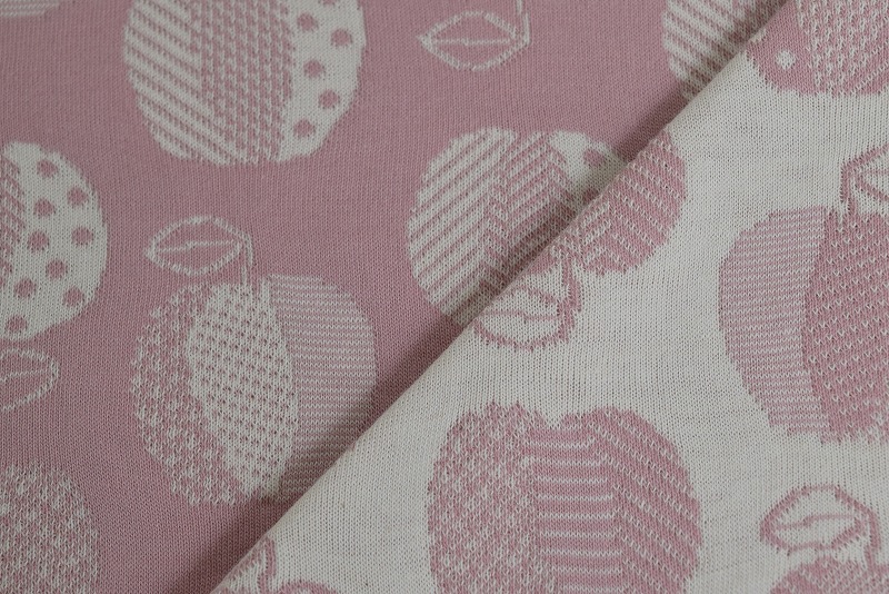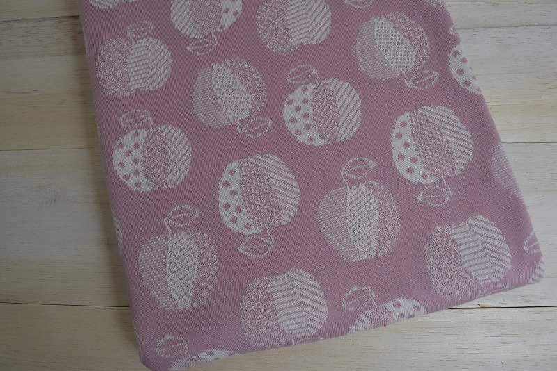 リバーシブルジャガードニット生地 りんご柄         色:フレンチローズ/アイボリー