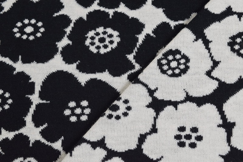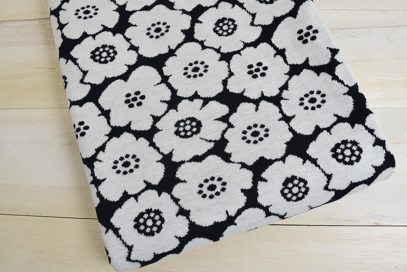 リバーシブルジャガードニット生地 ミニアネモネ柄         色:黒/アイボリー
