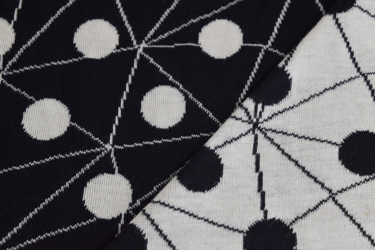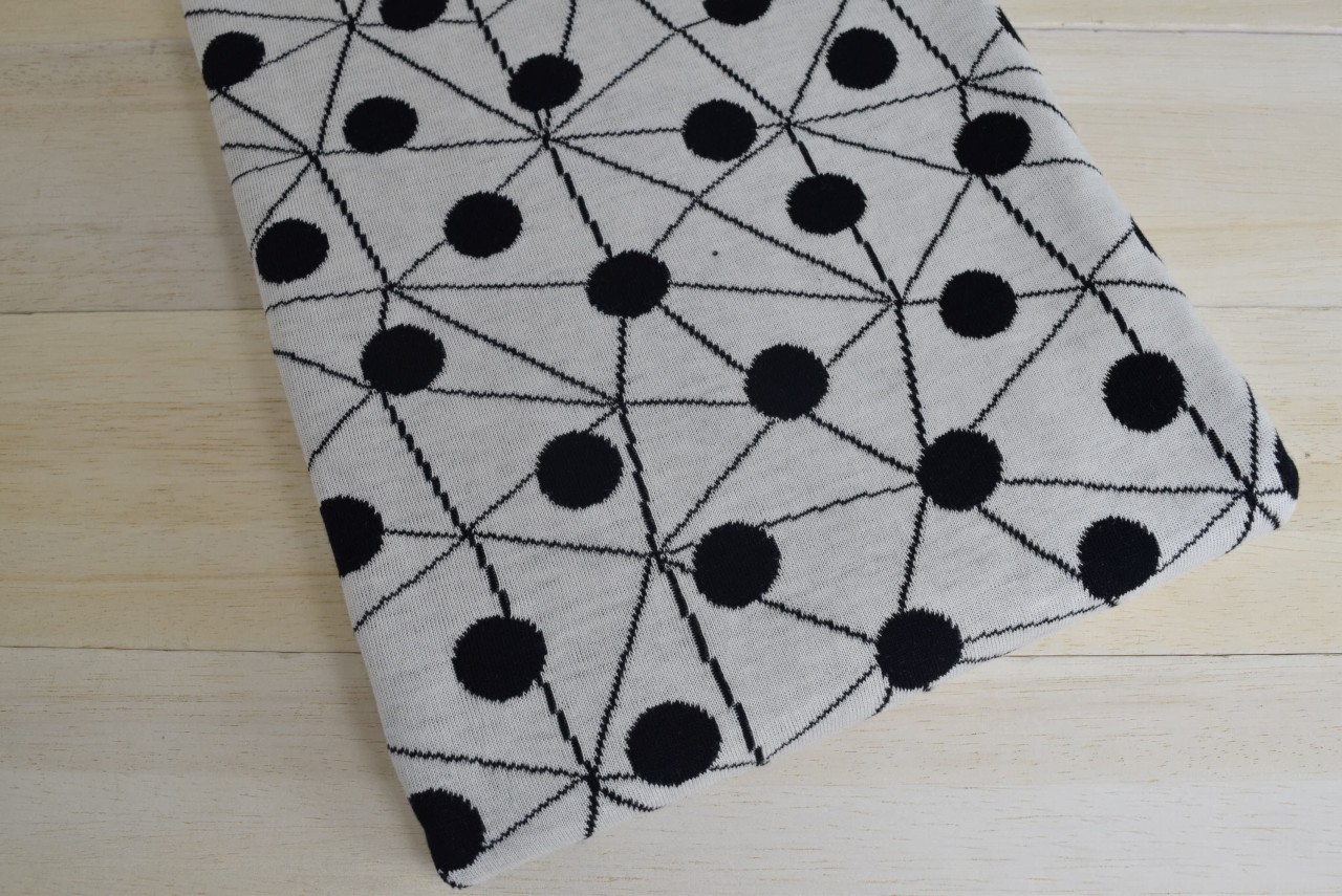リバーシブルジャガードニット生地 モザイクドット柄        色:黒/アイボリー