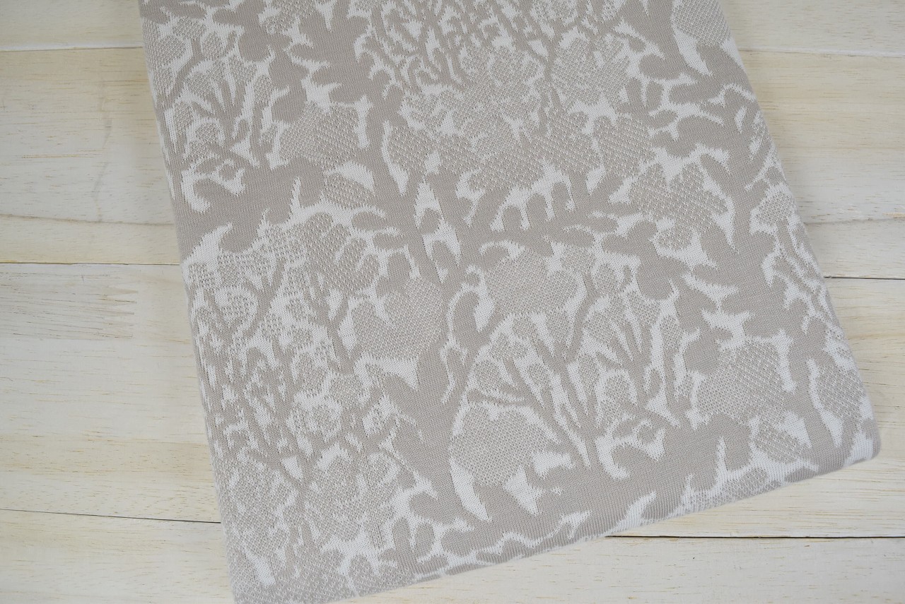 リバーシブルジャガードニット生地 ウィード柄             色:カシミヤ/アイボリー