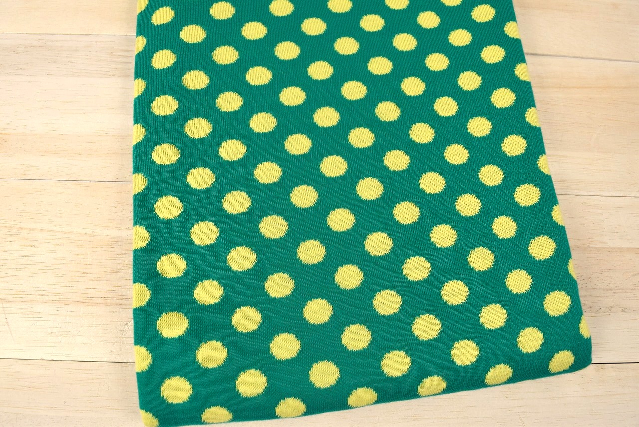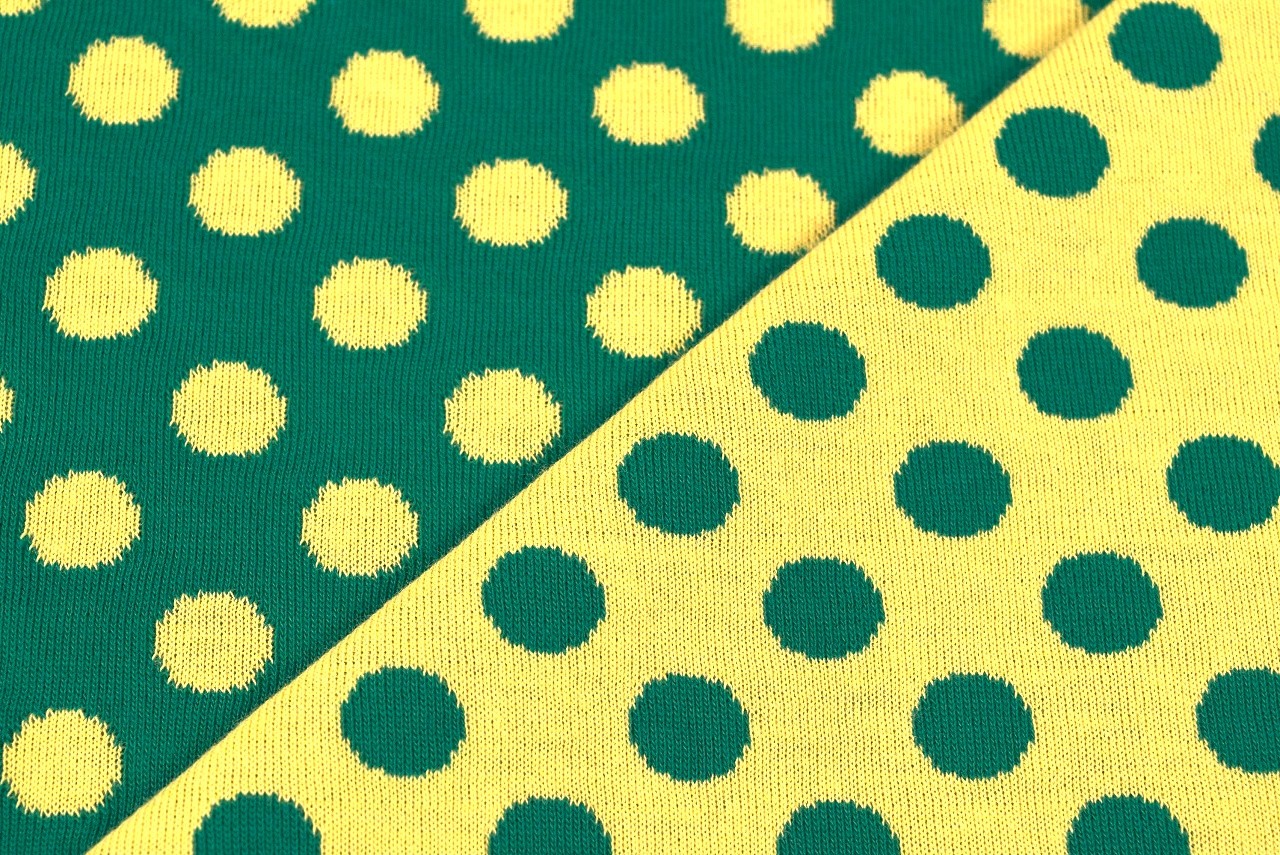 リバーシブルジャガードニット生地 ベーシックドット柄        色:レモン/グリーン