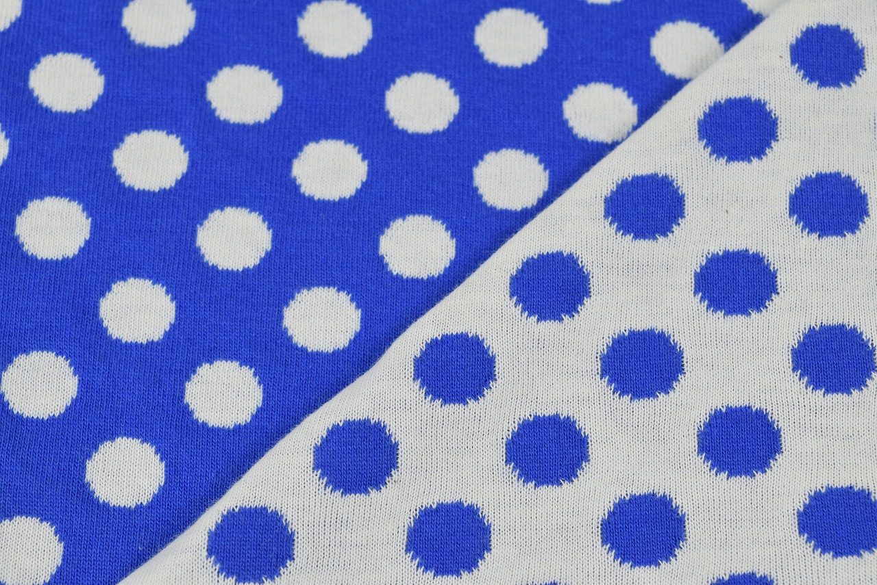 リバーシブルジャガードニット生地 ベーシックドット柄        色:ブルー/アイボリー