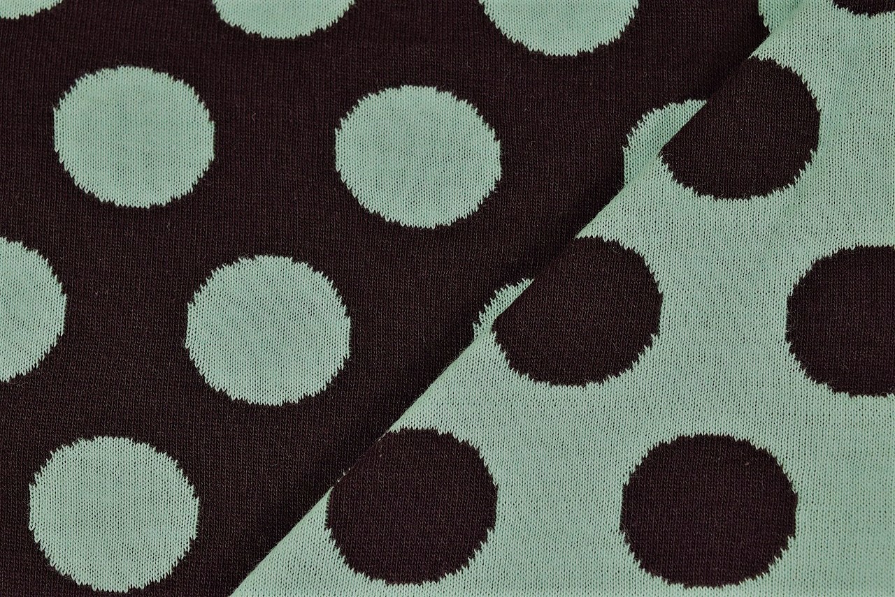 リバーシブルジャガードニット生地 しらたまドット柄        色:チョコレート/ミント