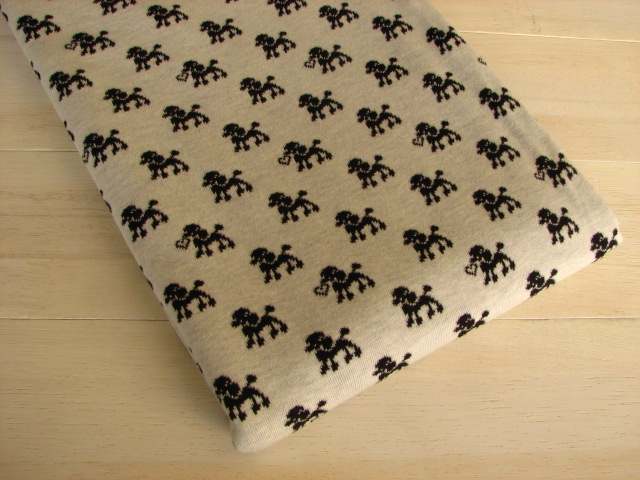 リバーシブルジャガードニット生地 プードル柄            色:黒/アイボリー