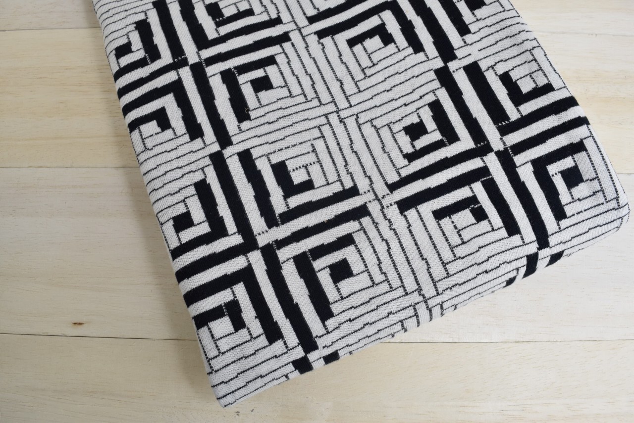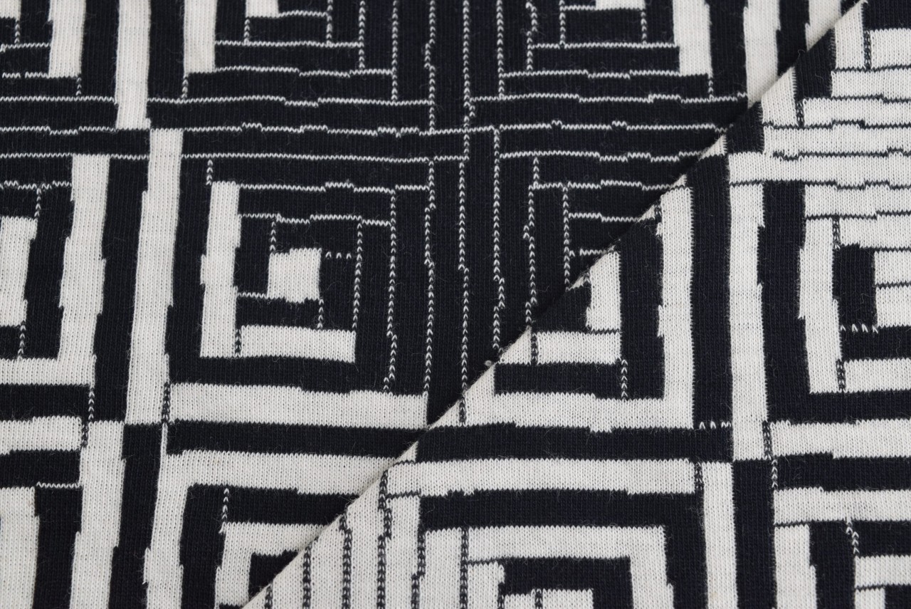 リバーシブルジャガードニット生地 ログキャビン柄           色:黒/アイボリー