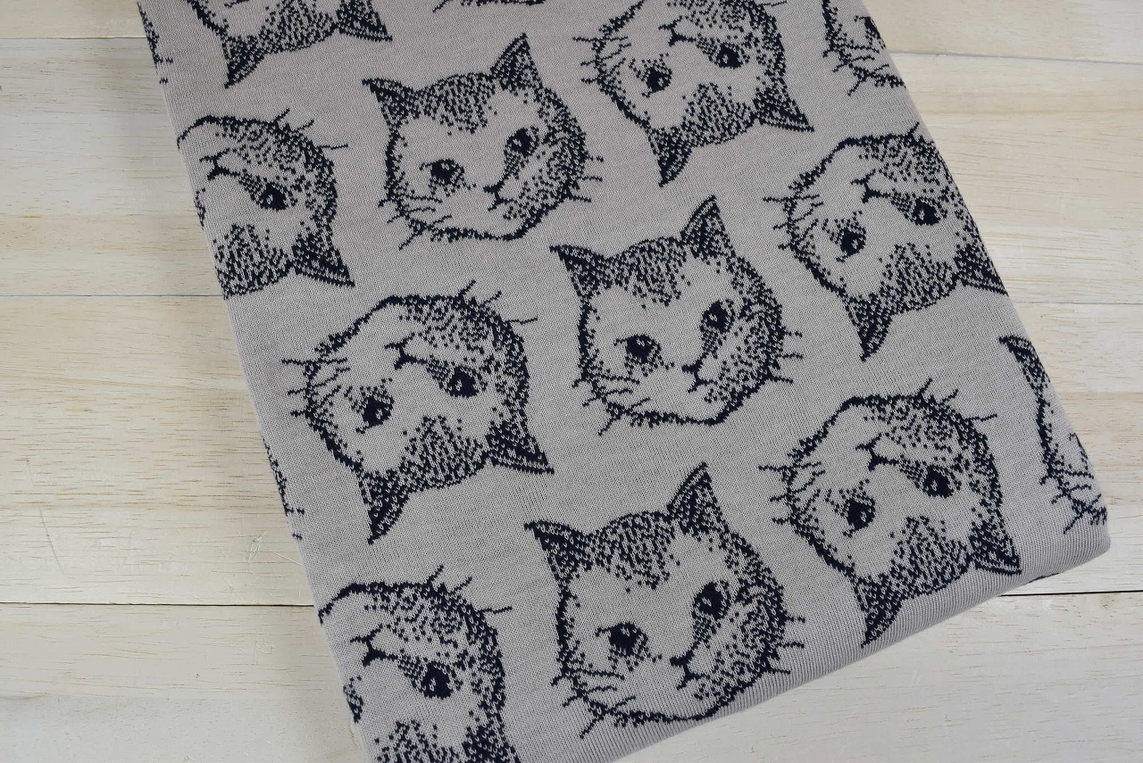 リバーシブルジャガードニット生地 シャトン柄            色:ネイビー/カシミヤ