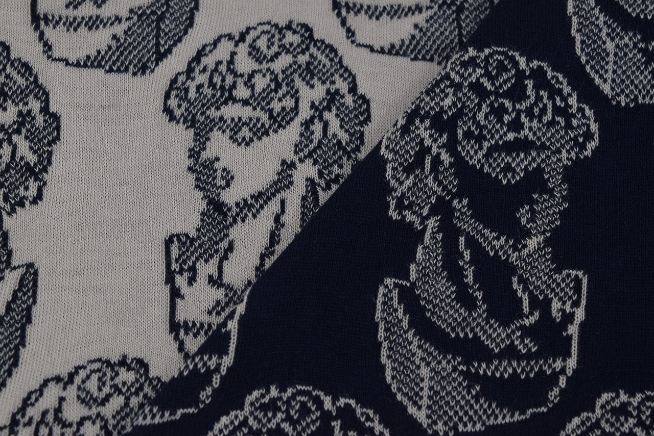 リバーシブルジャガードニット生地 アポロ柄            色:ネイビー/カシミヤ