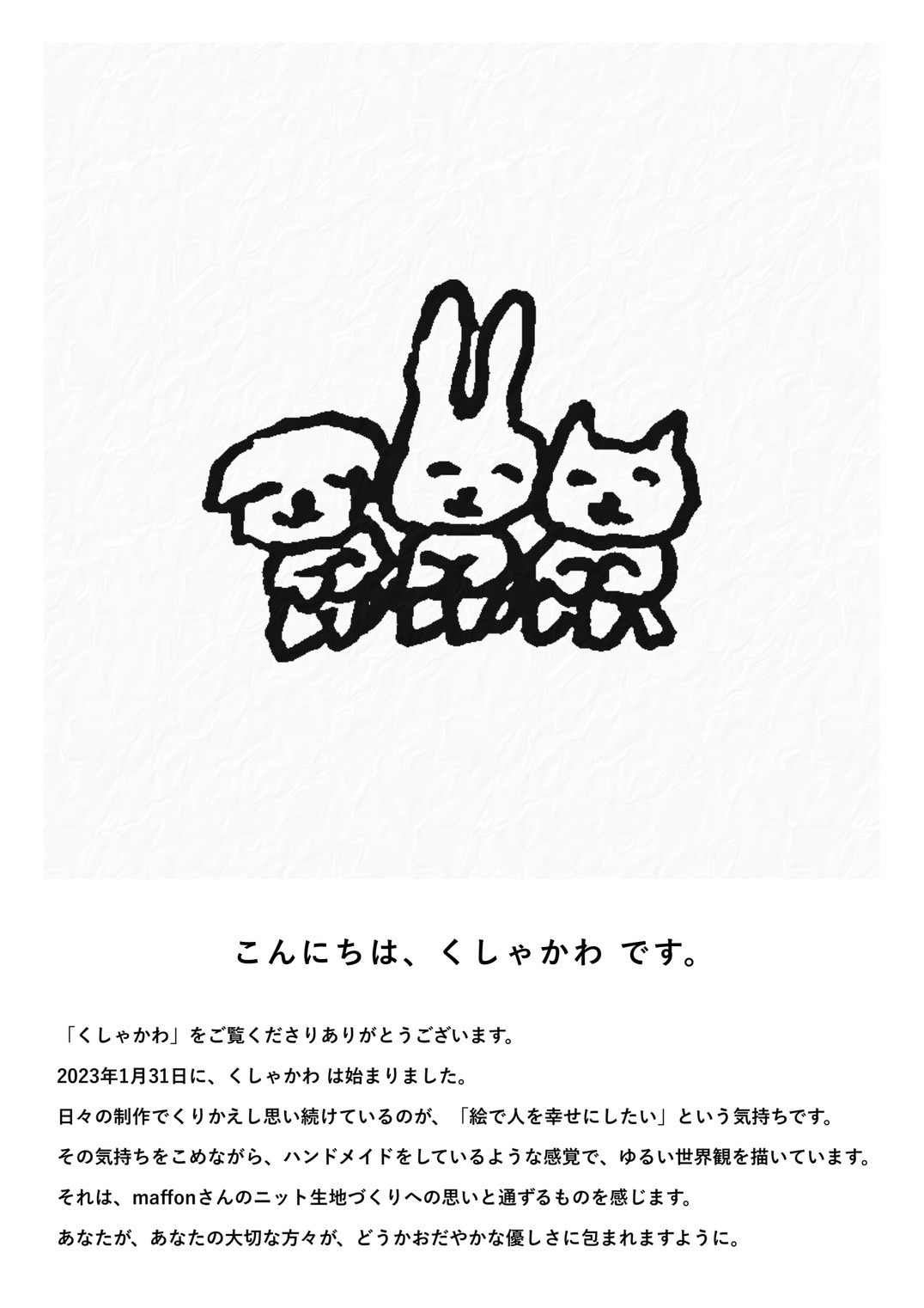 くしゃかわさんの描く世界をマフォンのニット生地とともに皆様の元へお届けできますように!