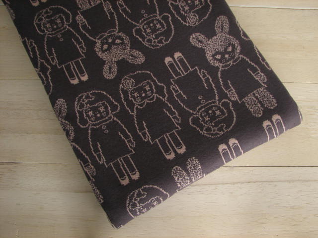 リバーシブルジャガードニット生地 アンティークドール柄 色:エボニー/フレンチピンク