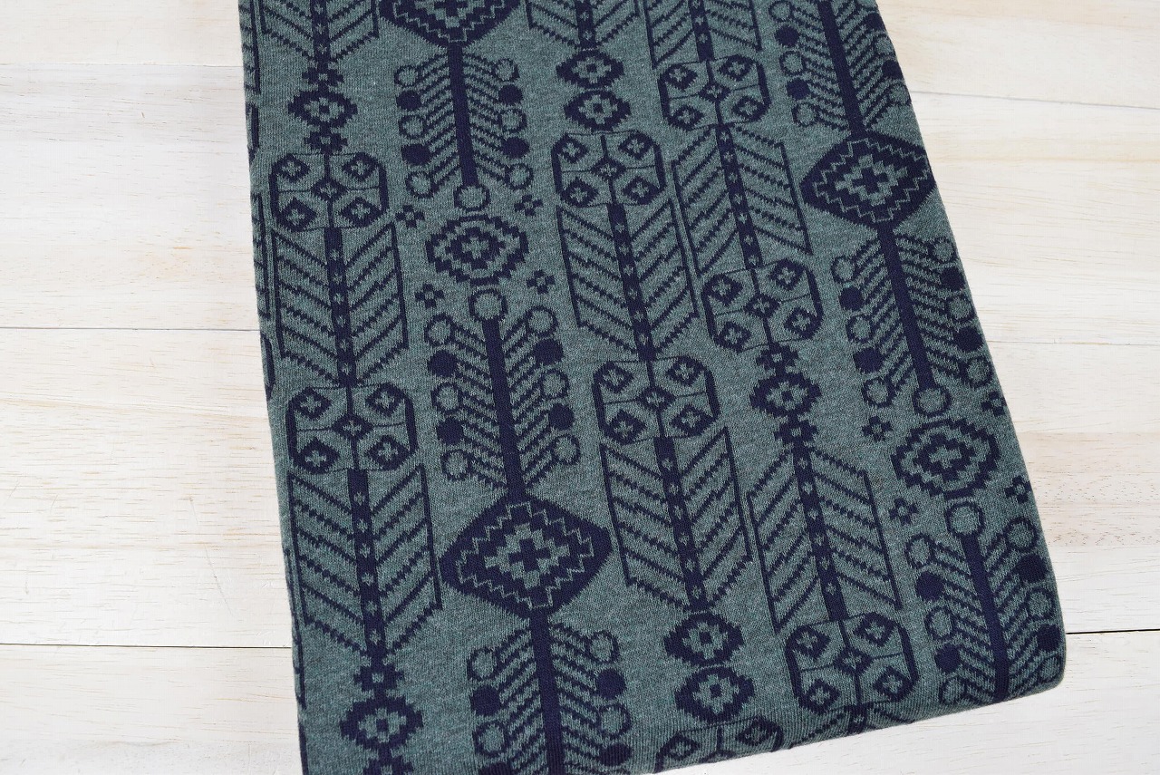 リバーシブルジャガードニット生地 バハル柄 色:ネイビー/杢グリーン