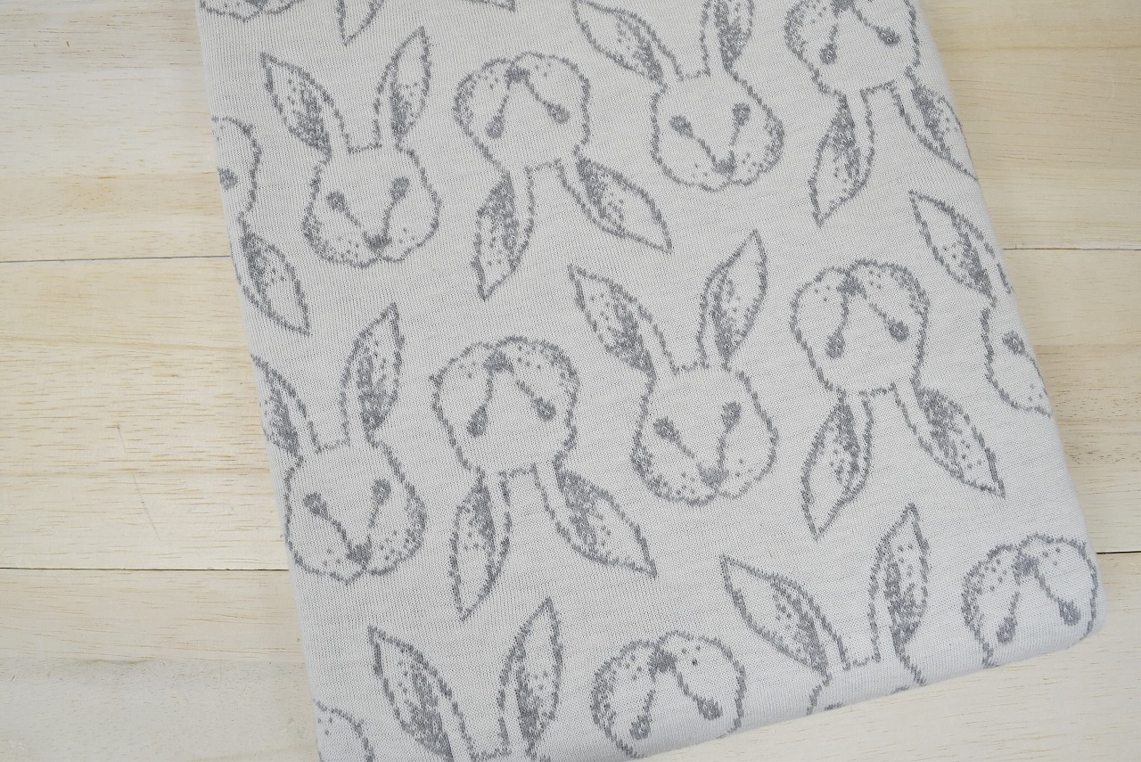 リバーシブルジャガードニット生地 プティラパン柄 色:杢グレー/アイボリー