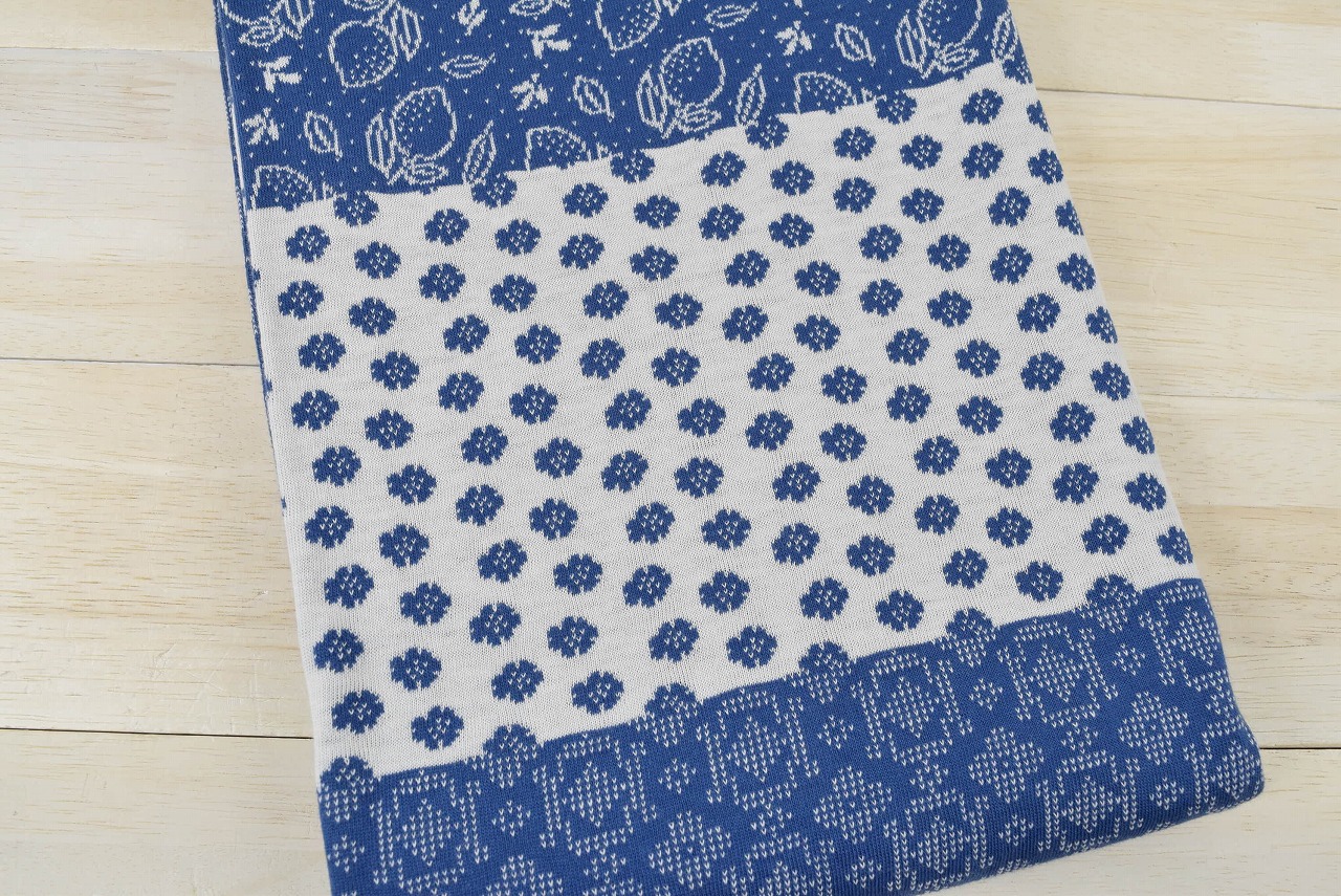 リバーシブルジャガードニット生地 サラサ柄 75cm幅 1パネル(130cm) 色:ジェイブルー/アイボリー