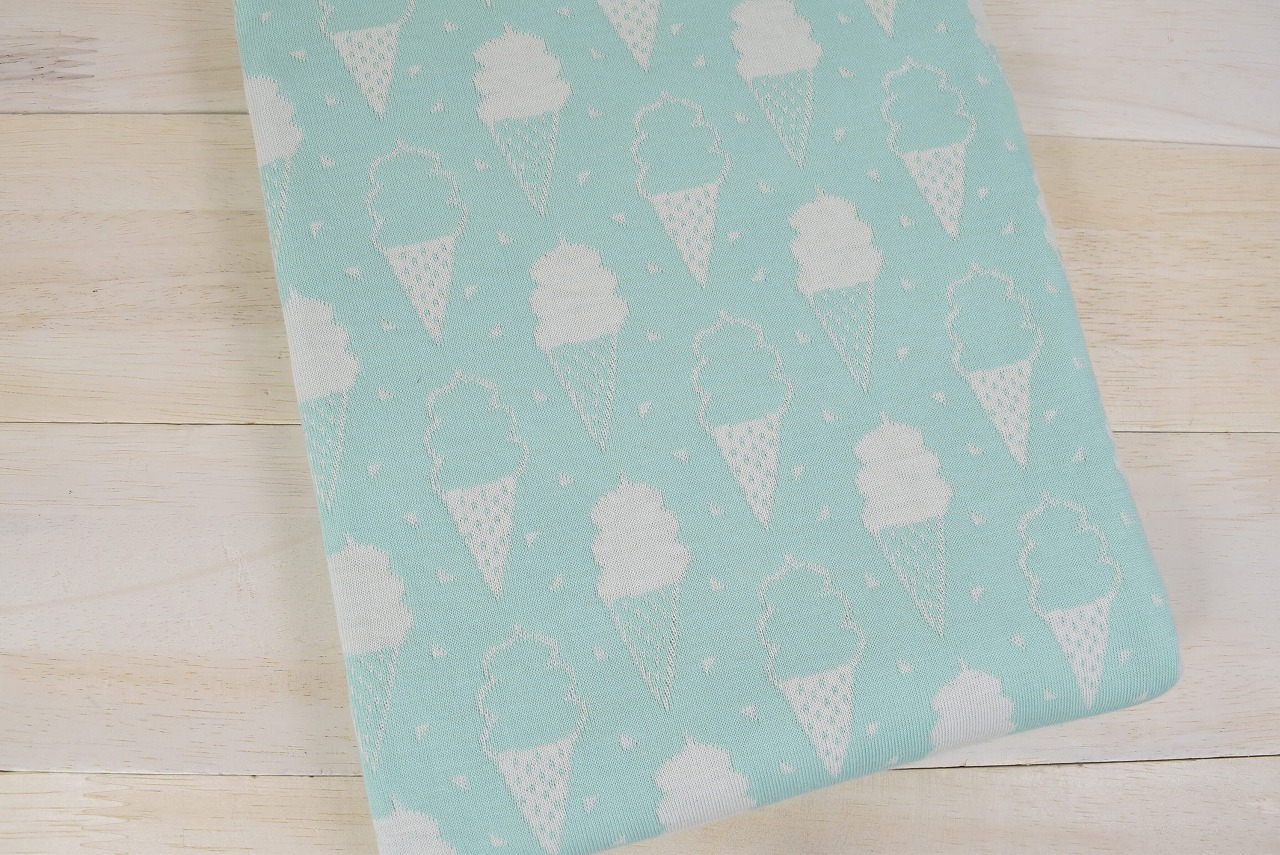 リバーシブルジャガードニット生地 ソフトクリーム柄 色:ミント/アイボリー