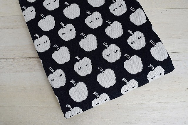 リバーシブルジャガードニット生地 アップルアタック柄 色:黒/アイボリー