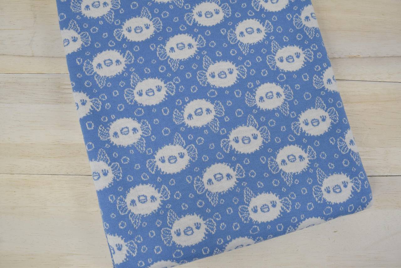 リバーシブルジャガードニット生地 ハリセンボン柄 色:ライトブルー/アイボリー