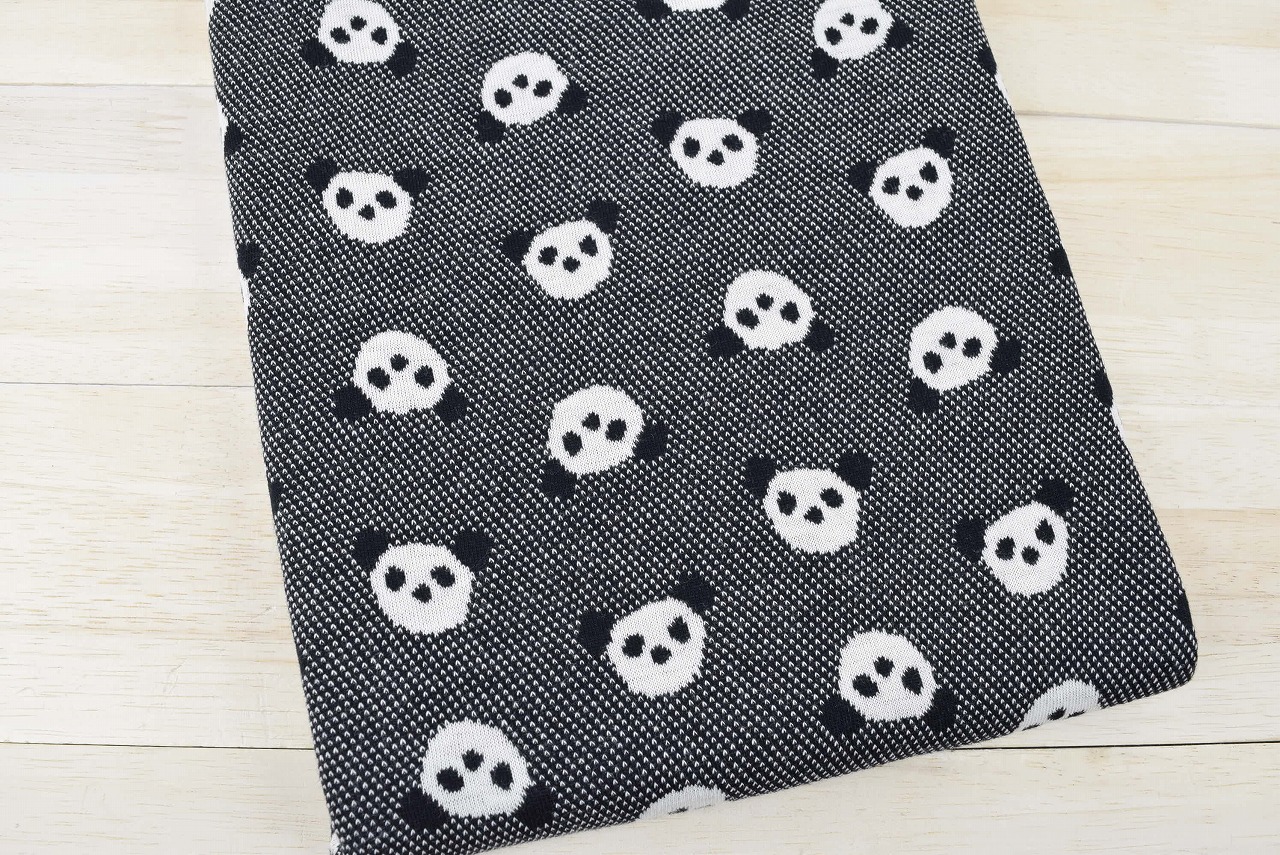 リバーシブルジャガードニット生地 スマイルパンダ柄 色:黒/アイボリー