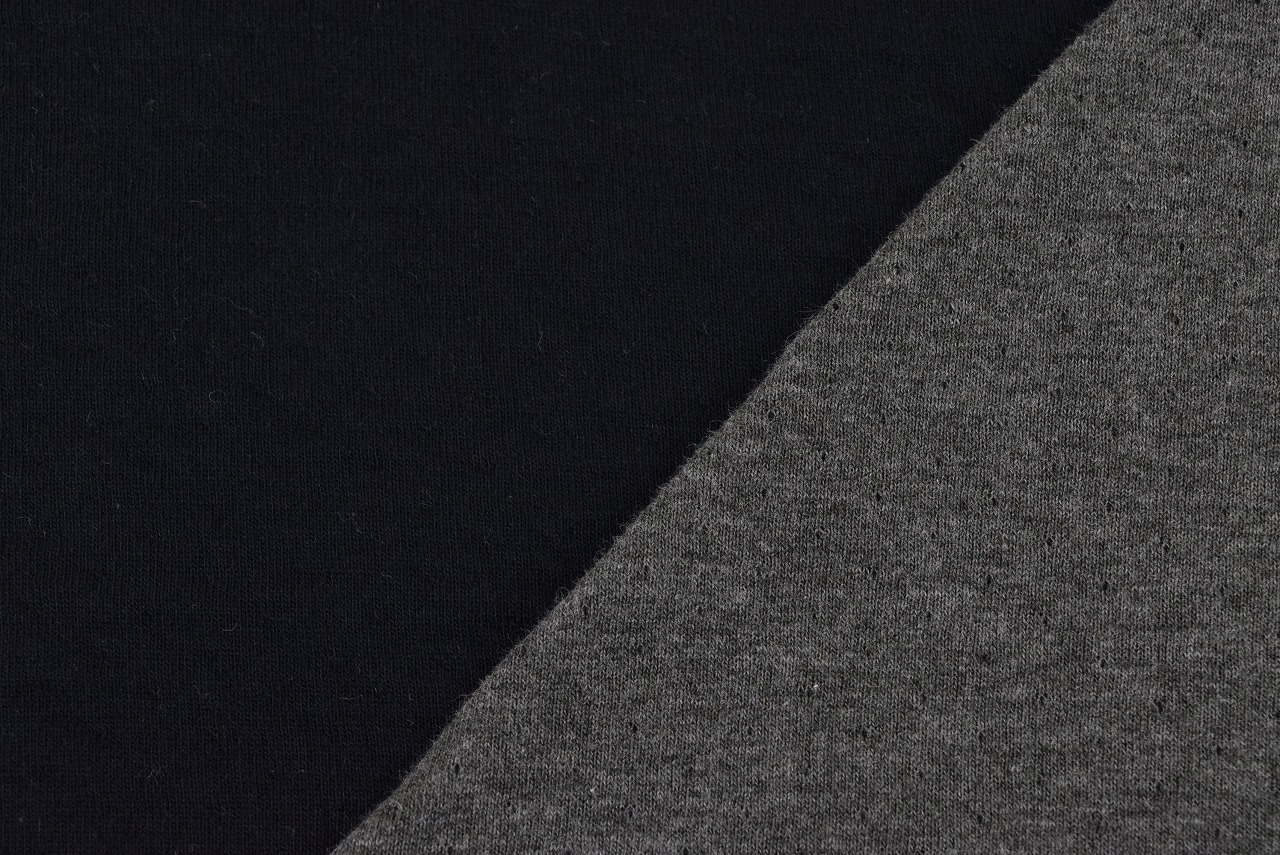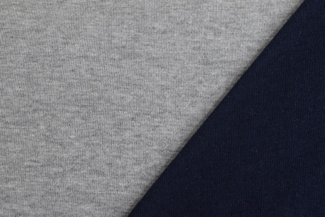 リバーシブルジャガードニット生地 無地×メッシュ 色:杢グレー/ネイビー