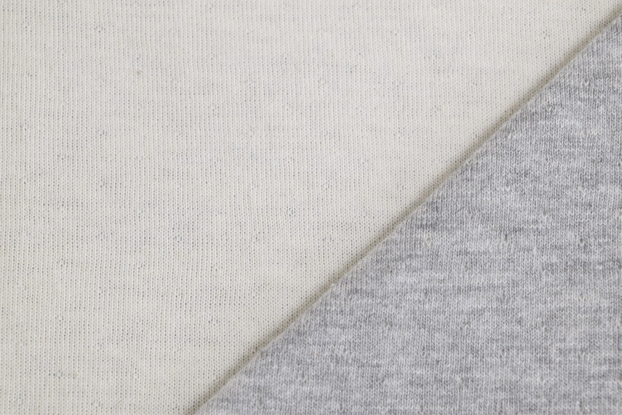 リバーシブルジャガードニット生地 無地×メッシュ 色:杢グレー/アイボリー