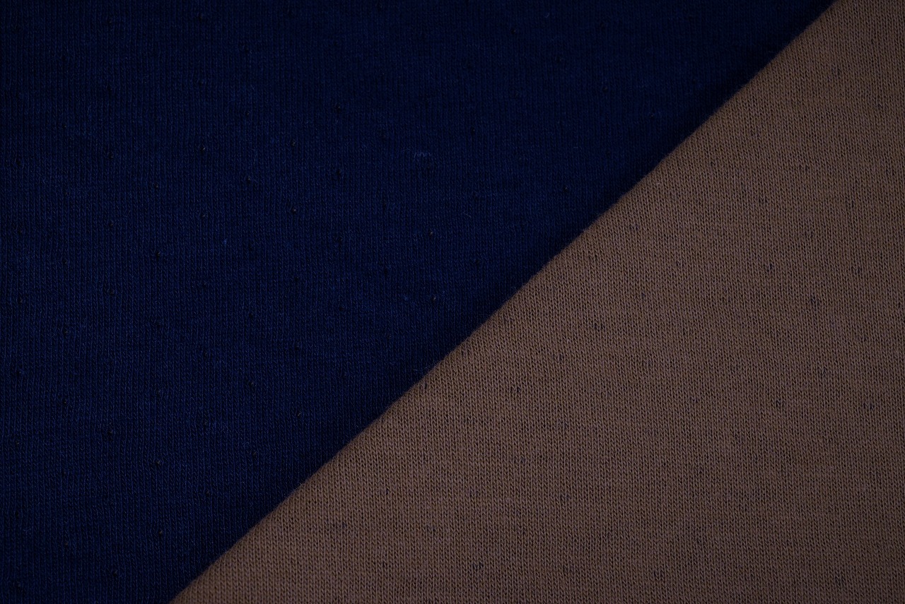 リバーシブルジャガードニット生地 無地×メッシュ 色:ネイビー/シナモン