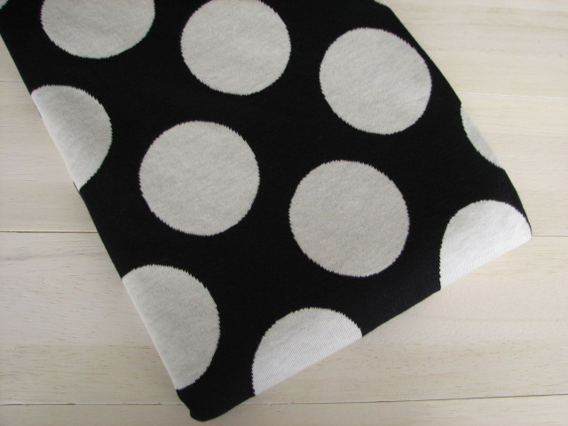 リバーシブルジャガードニット生地 インパクトドット柄 色:黒/アイボリー