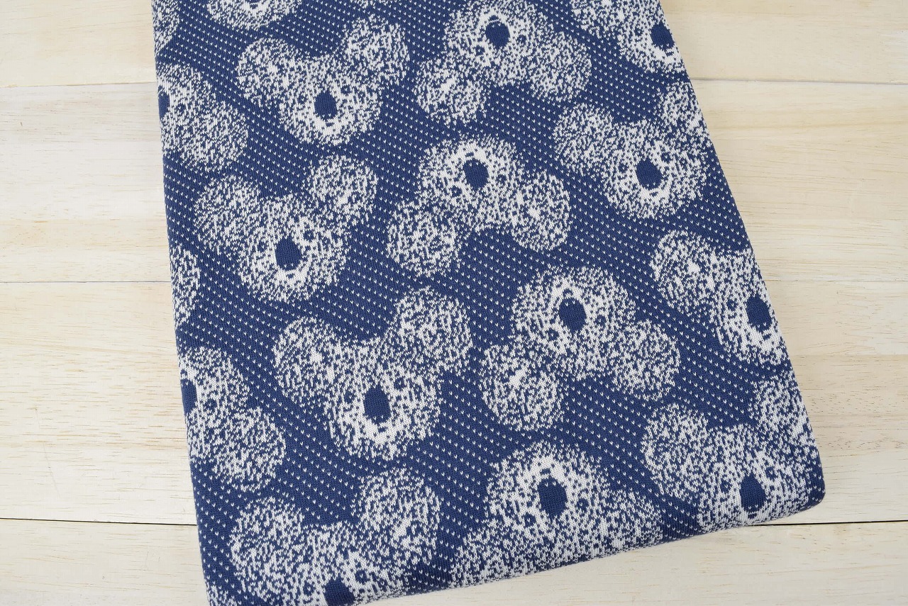リバーシブルジャガードニット生地 プードル柄 色:デニム/アイボリー