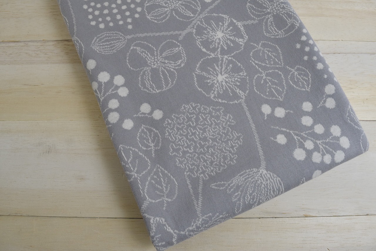 リバーシブルジャガードニット生地 フロリスト柄 色:アッシュ/アイボリー
