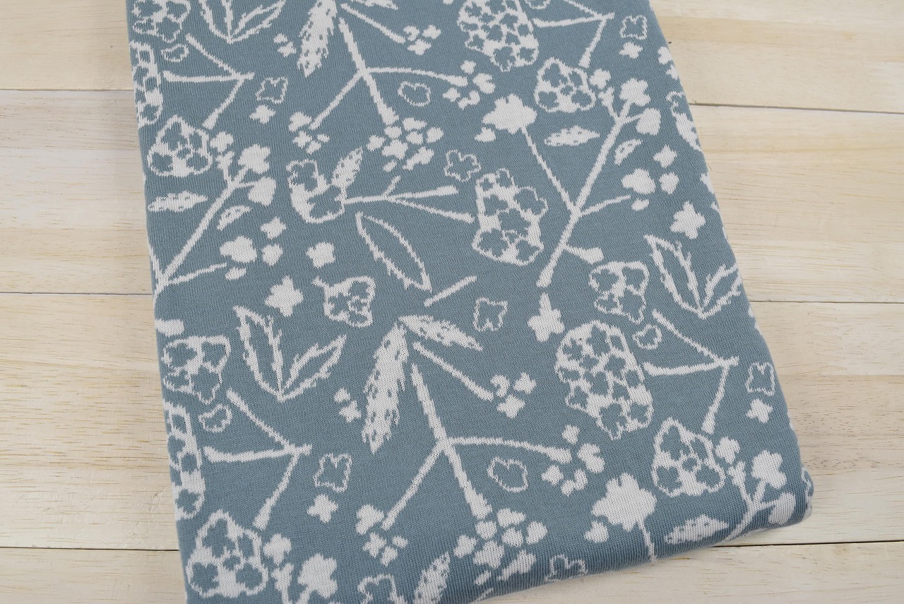 リバーシブルジャガードニット生地 バーベナ柄 色:アロエ/アイボリー