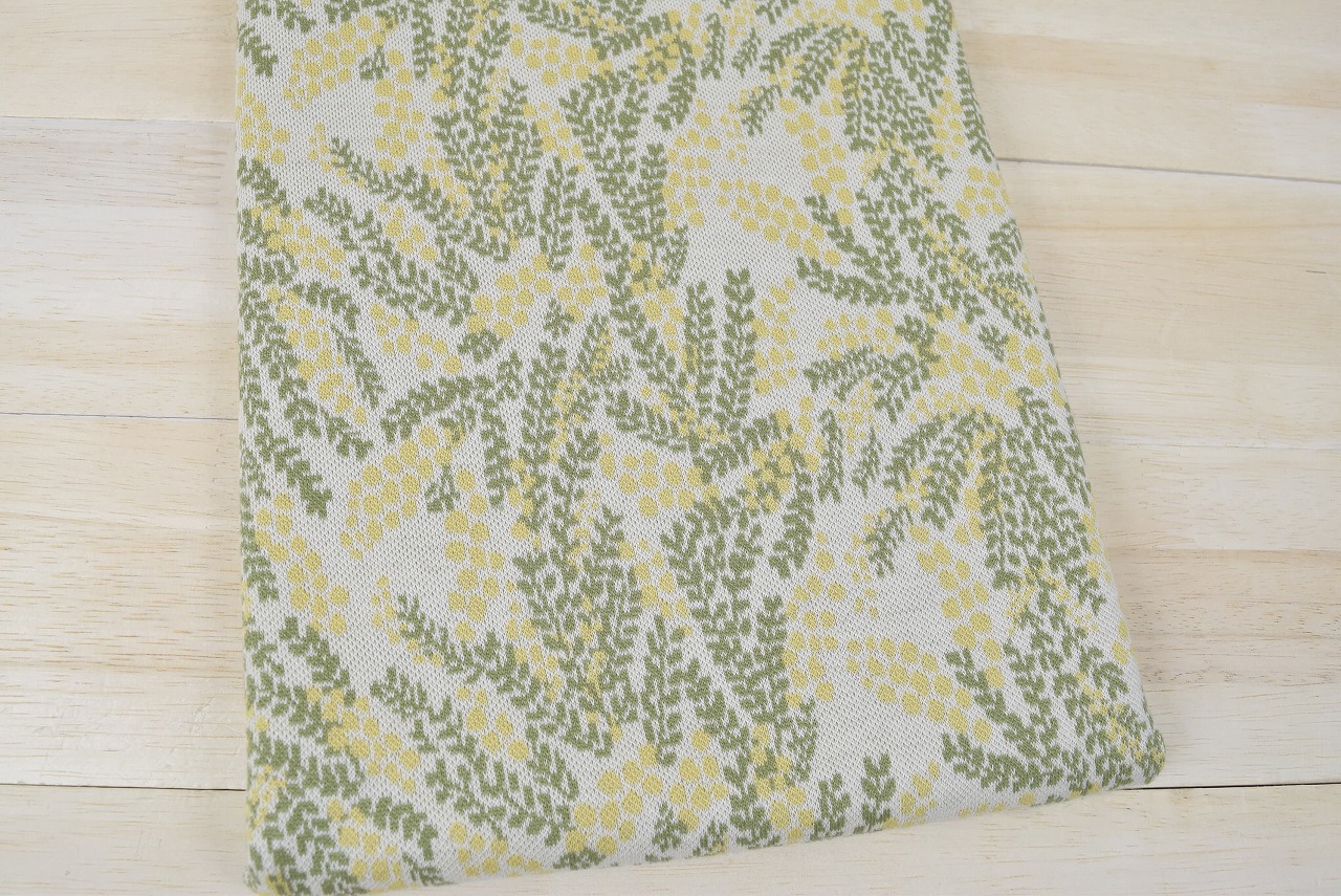 3色ジャガードニット生地 ミモザ柄 色:アイボリー/グラスグリーン/イチョウ