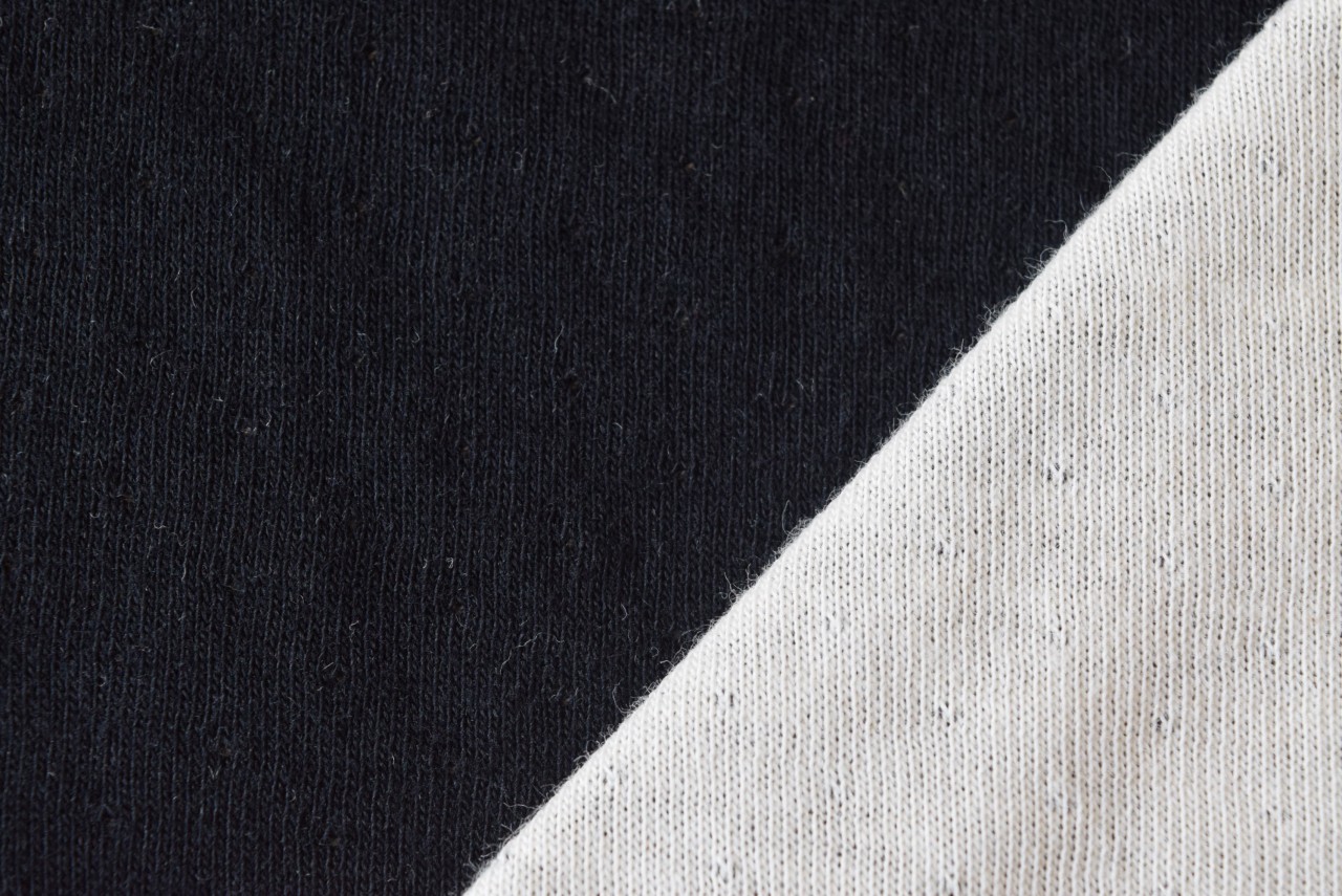 リバーシブルジャガードニット生地 無地×メッシュ 色:杢ネイビー/アイボリー