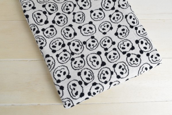 リバーシブルジャガードニット生地 スマイルパンダ柄 色:黒/アイボリー